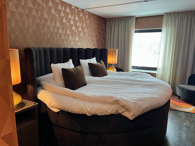 Vi fick bl.a. se två av de 240 nyinredda hotellrummen. Det finns olika nivå på rummen, en del är vanliga klassiska dubbelrum och familjerum, andra har t.ex. egen bastu och badkar mitt i rummet och olika storlek på sängarna.