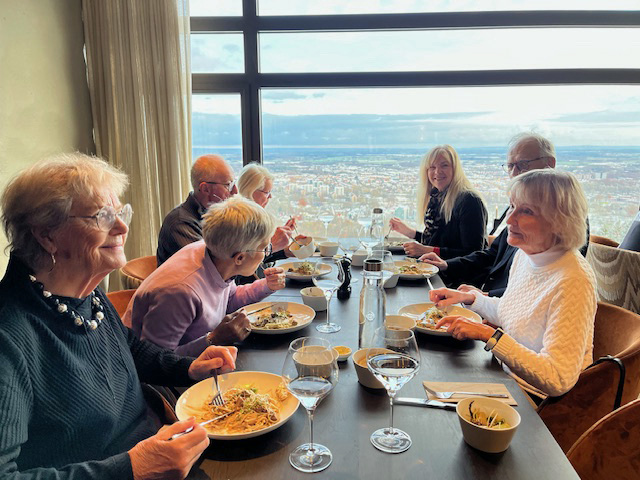 Vi avslutade visningen med en gemensam lunch med utsikt över ett vintrigt Skövde.