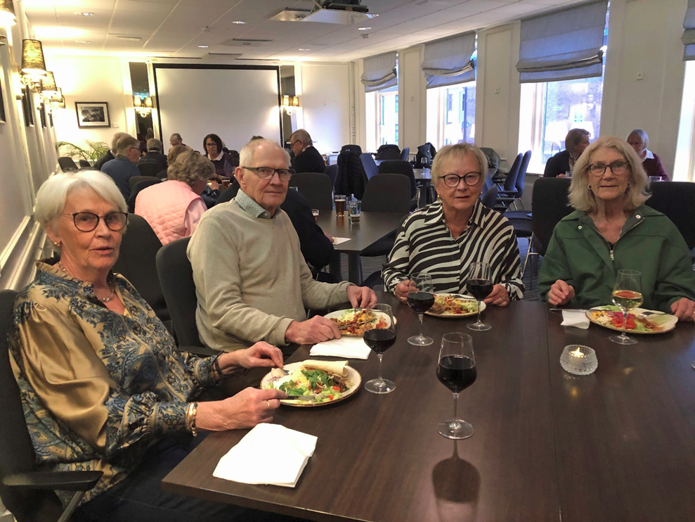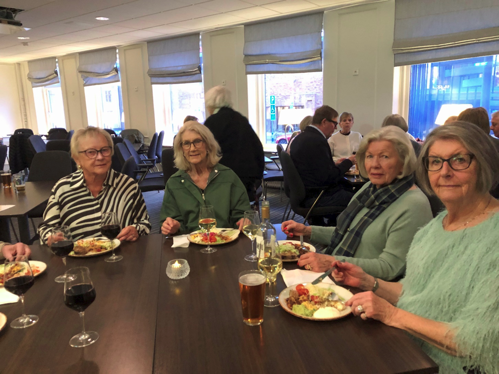 Vi var 20 personer som träffades på Restaurang Mode för att äta lunch tillsammans. Vi åt och sedan hade ansvarig Marita Blom en liten sångtävling som mottogs mycket positivt. Efter detta blev det kaffe o kaka. En mycket lyckad lunch med ett positivt, glatt gäng.