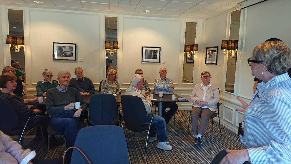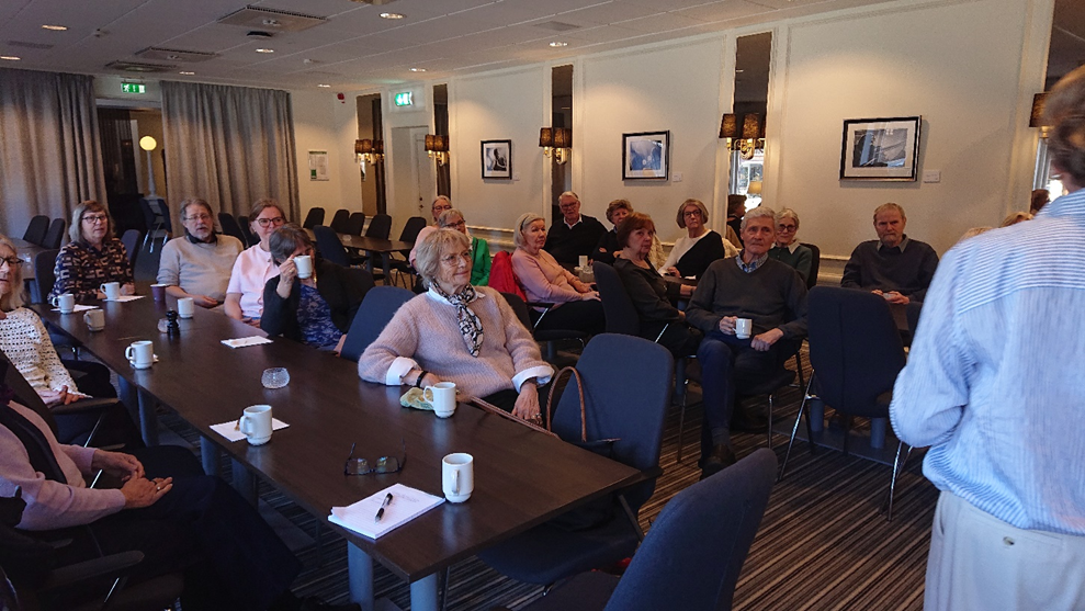 60-talet medlemmar från Aktiva Seniorer hälsades välkomna till Afterwork på Scandic Billingen med en nyskriven låt.