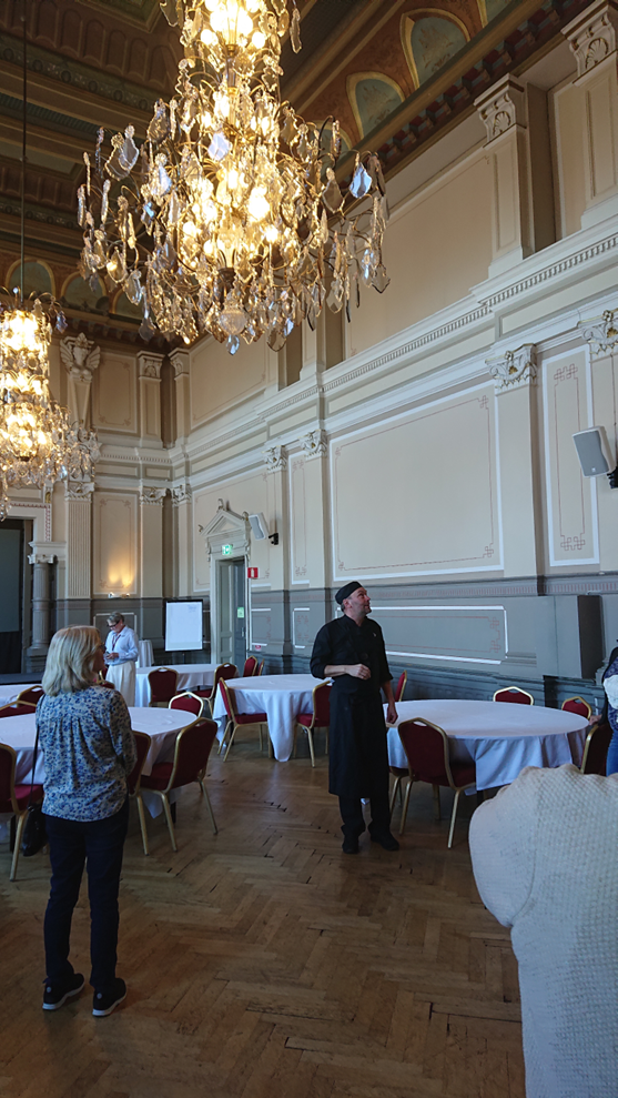 Sedan blev det guidning av Katarina och Mattias, fick bl.a titta på den fantastisk festlokalen, trappan upp till festlokalen, på den stora terassen.